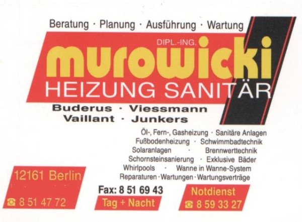 Dipl.-Ing. Murowicki Gasgeräteservice Heizung Sanitär Notdienst Heizung Störung Entstörungsdienst Gasgeräte Service | murowicki@t-online.de Tel.:030/851 47 72